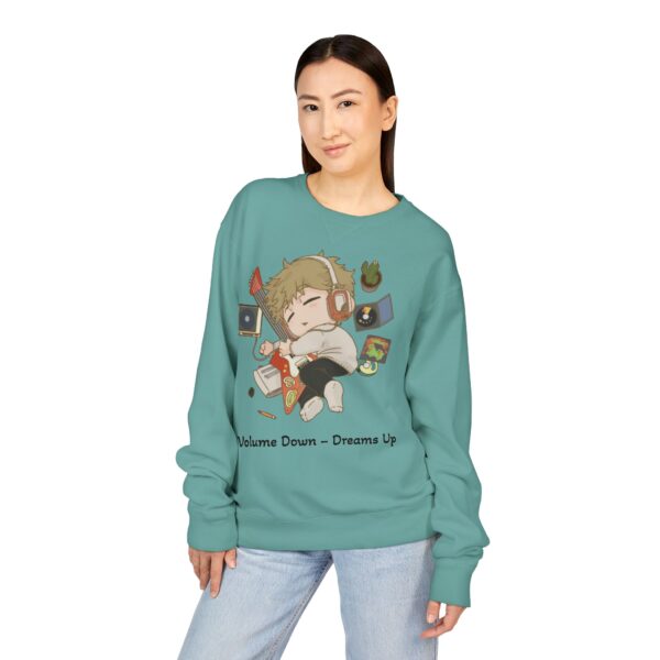 Volume Down – Dreams Up – Chibi Unisex ComfortWash® Garment Dyed Crewneck Sweatshirt