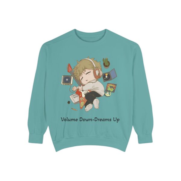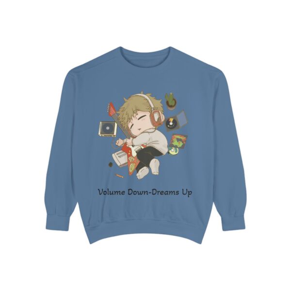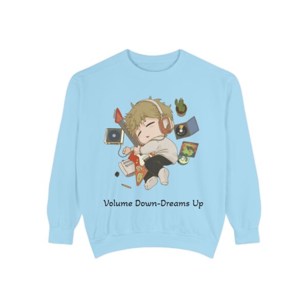 Volume Down – Dreams Up – Chibi Unisex Garment-Dyed Sweatshirt